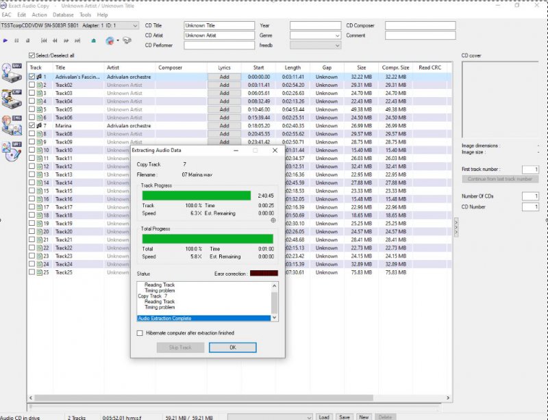 je zegt dat er maar 3 vermeld werden ..er staan er wel 25 vermeld .. en hoewel er "onbekend artist " vermeld word zijn deze te rippen en af te spelen ... maar heb je dus geen info !