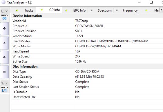 heb deze tau analyzer 1.2 ook eens opgehaald om hier de cd te lezen .. wel al de 24 tracks komen er op ..