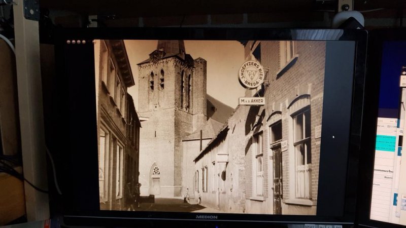 - ik plaats de afbeelding op het scherm en vergroot hem beeldvullend met het bekende icoontje dat daarvoor voorhanden is.