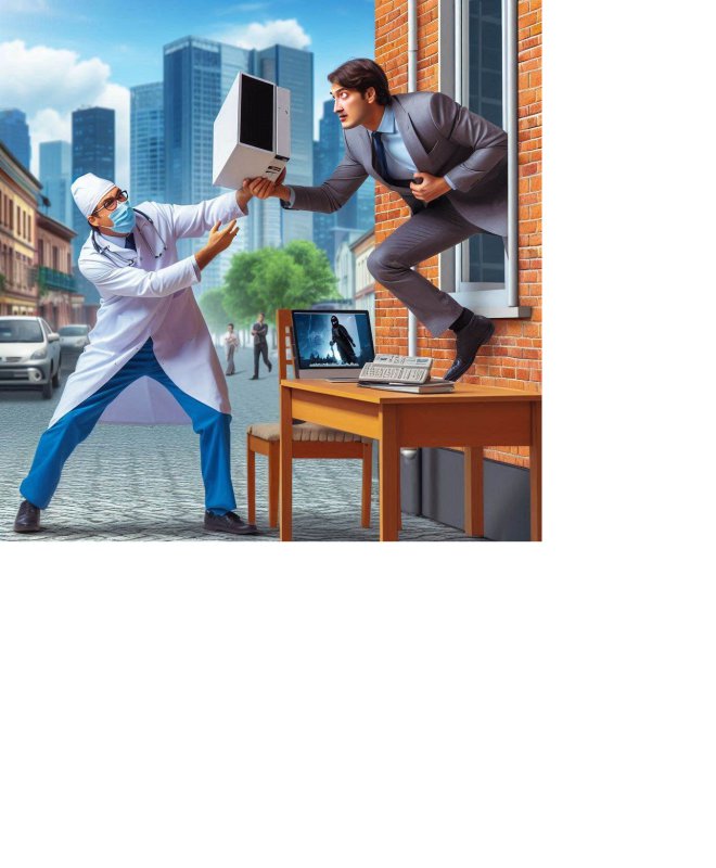 Type je bijvoorbeeld: een maak een jg van [een man die een pc uit het raam gooit en een dokter die hem opvangt] dan maakt hij een bijna levensechte jpg met bijna levensechte personen erin. Zie dat maar eens met google te vinden (lees: onmogelijk)