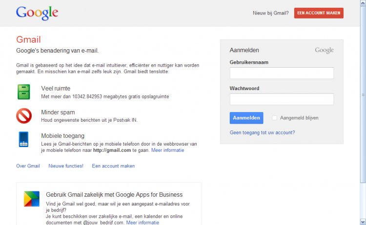 Bij het aanmelden voor Gmail moet een veld "Gebruikersnaam" ingevuld worden.