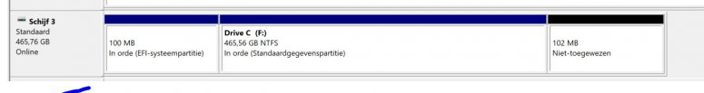 De clone kreeg 3 partities toegewezen. Ga ik echter kijken via schijfbeheer, dan heeft de clone 3 partities. Mest schijfbeheer kan ik die eerste partitie niet verwijderen.