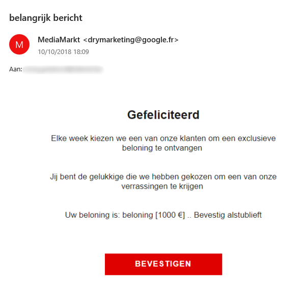 In phishingmail staat vaak een verzoek om persoonsgegevens. Die moeten om de één of andere reden zogenaamd ‘bijgewerkt’ of ‘geverifieerd’ worden. Of je hebt iets gewonnen, en je hoeft alleen nog maar een paar privégegevens te verstrekken. Dit zijn signalen dat je zeer waarschijnlijk met een phishingmail te maken te maken hebt.