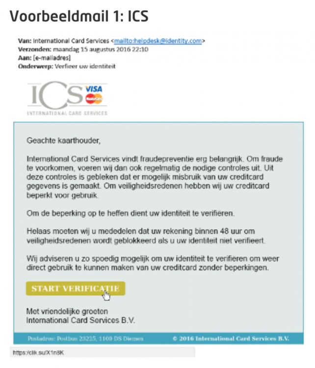 Nu je jouw kennis wat hebt bijgespijkert, is het tijd voor een kleine test. Is de onderstaande mail van ICS (Visa Card) nep of echt?