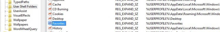 Ga bij HKEY_CURRENT_USER\Software\Microsoft\Windows\CurrentVersion\Explorer\Shell Folders met rechtermuisklik op Favorites staan en kies voor aanpassen.