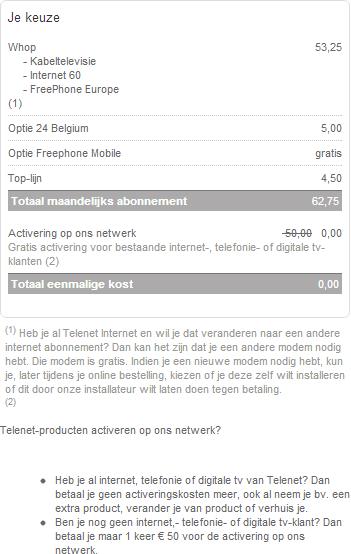 Interessant bij telenet als je naast internet ook vaste lijn hebt. Telenet Whop.jpg Bij mij is dat dezelfde prijs al vroeger met basis internet. Met Whopa komt dit 10 euro duurder en verdubbel je ook je snelheid.