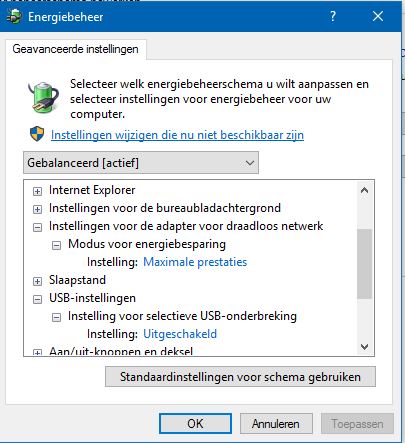 Ranger, bij de 7 USB-hoofdhub staat "De computer mag dit apparaat uitschakel om energie te besparen" telkens aangevinkt.