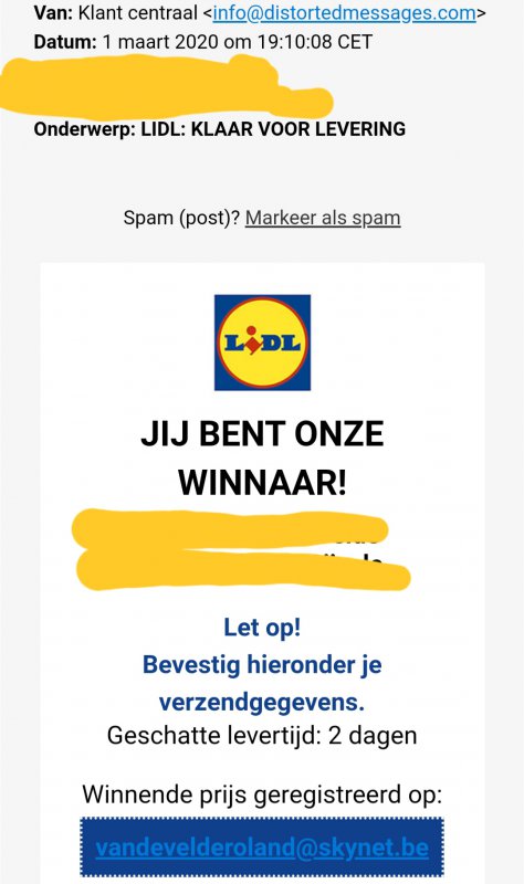 - het E-mailadres waarmee deze mail verstuurd werdt is geen eigendom van Lidl.