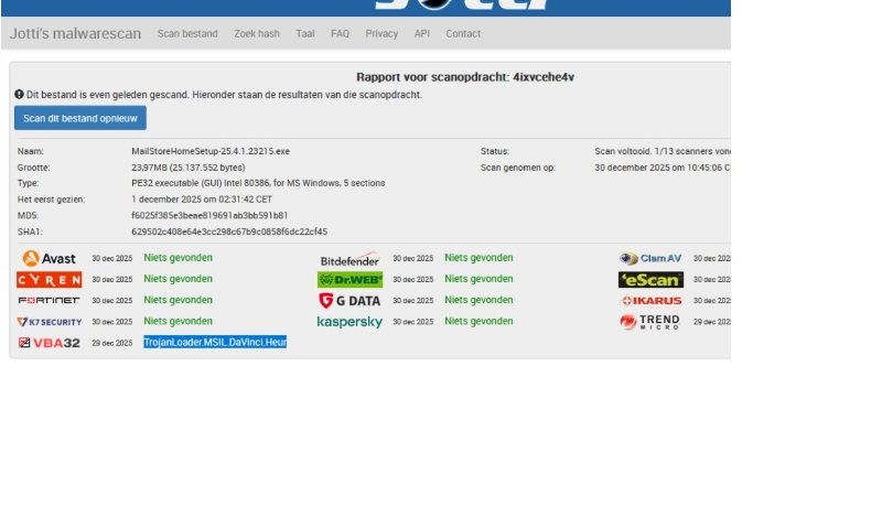 Overigens je scan van Virustotal gaat niet over Mailstore maar over 7zs.sfx.exe !!!
