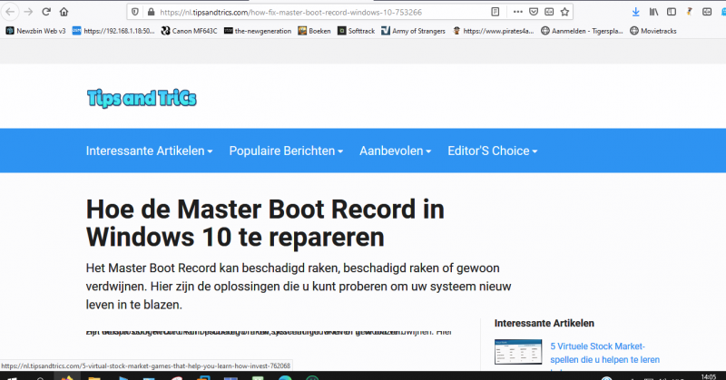 Door een onhandige handeling is er een probleem met de MBR ontstaan ( master boot record)