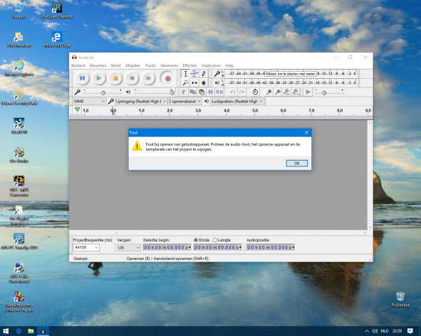 Nadat ik de computer geüpdatet heb naar Windows 10 Versie 1803 kan ik niet meer opnemen met Audacity.