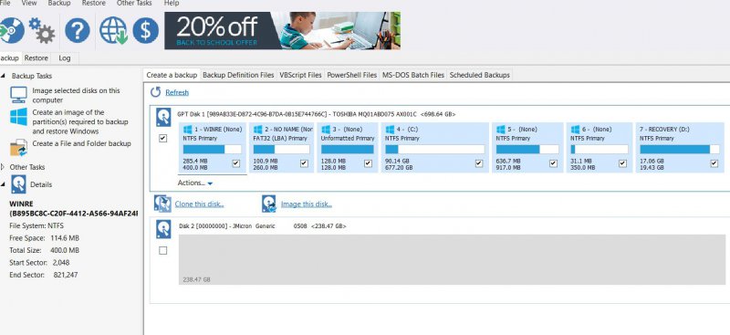 Nu zie ik dat de hdd schijf vanalles bevat (weet niet wat het is). Heb de printscreen bijgevoegd van zowel de weg via verkenner , en via macrium reflect.