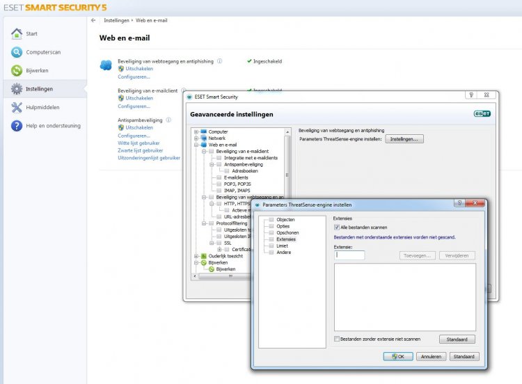 open vervolgens het kruisje bij " e-mailscanner"
