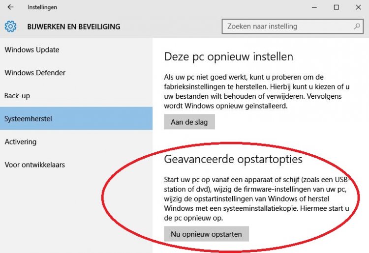 bezie ook het filmpje eens over welke herstel opties je te zien krijgt ...