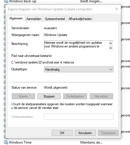 ik had de update service op stoppen gezet en nu staat die toch nog op word uitgevoerd (sorry ) ik heb niet dubbel geklikt op die service misschien dat daarom nog terug op word uitgevoerd staat