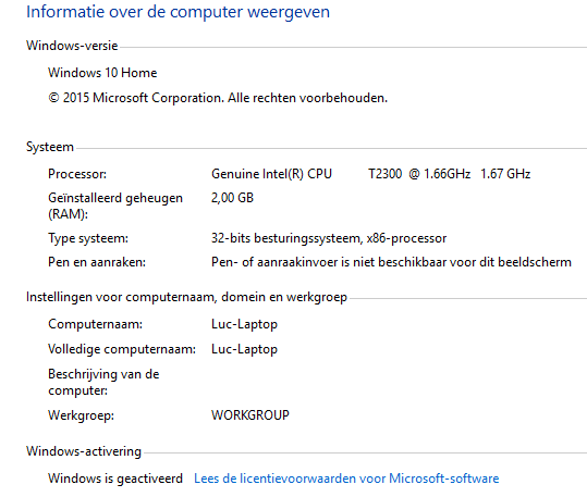 Het is omdat ik een Schoone installatie gedaan heb op mijn oude Laptop.