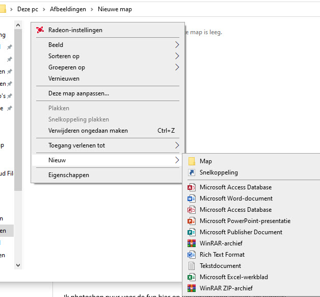 Ik wil een nieuw txt bestand aanmaken in een map en klik met mijn rechtermuisknop op nieuw.