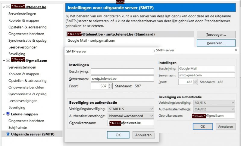 Ik gebruik imap en hieronder mijn SMTP instellingen voor Telenet en Gmail.