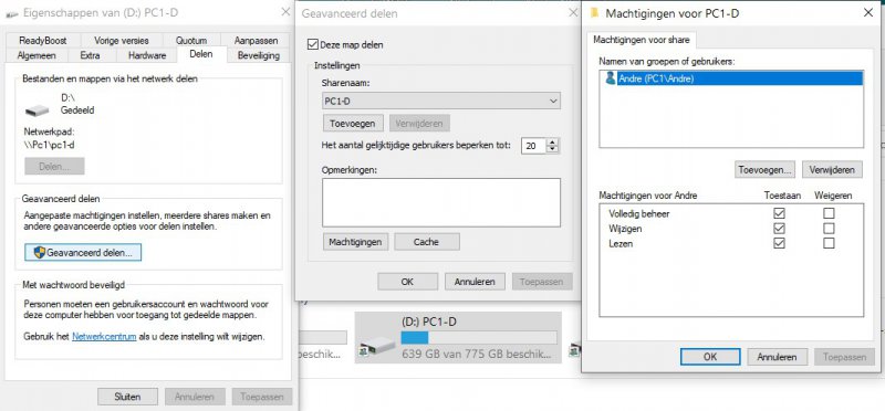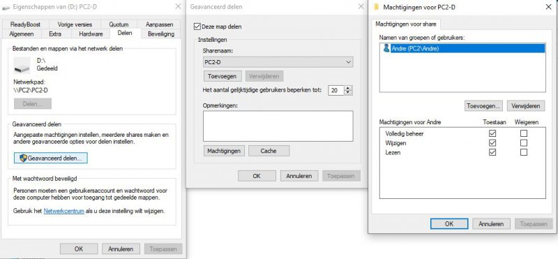 Dus ik wil gewoon vanaf 1 pc in de andere kunnen werken als dit nodig is. Dus de c: van pc 1 zien in pc2 en omgekeerd.