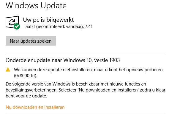 je systeem is duidelijk nog niet bijgewerkt naar versie 1903 aangezien er vermeld word " Nu downloaden en installeren "