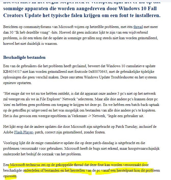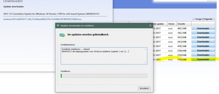 Pc afgesloten , terug opgestart zoals je vroeg, en laten updaten met uw link ,maar helaas was de einduitslag ; update mislukt !!!!!!!!!!