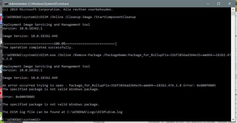 Opgelost Update version 1903 (KB4524570) mislukt