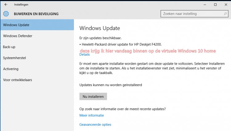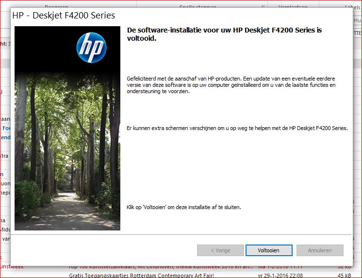 Heb na mijn upgrade naar Windows 10 geprobeerd om de software en drivers voor HP Deskjet 4200 series opnieuw te downloaden vanaf de HP-site omdat het niet meer werkte via de originele installatiedisk ( verouderde drivers). Dit lukt maar ten dele maar ik kan wel afdrukken en ook scannen via een "workaround" (Windows faxen en scannen). Zou dit kunnen komen omdat mijn PC de 'BING-bar' ( hoort bij het HP installatiepakket) weigert te installeren. Ik krijg dan een melding dat "HP Solutions" niet werkt omdat de installatie niet compleet is.