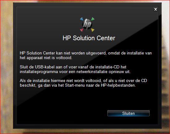 Kortom het printen en scannen werkt nu wel maar wel via een omweg en steeds weer nieuwe meldingen bij het opstarten dat het programma HP niet naar behoren werkt. Tamelijk vervelend !!!