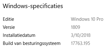 De pc is net een paar dagen oud en net nieuw geïnstalleerd ik denk dan ook dat versie1809 de oorzaak is het liefs hou ik het bij deze versie en hoop dan ook dat er snel patches komen.