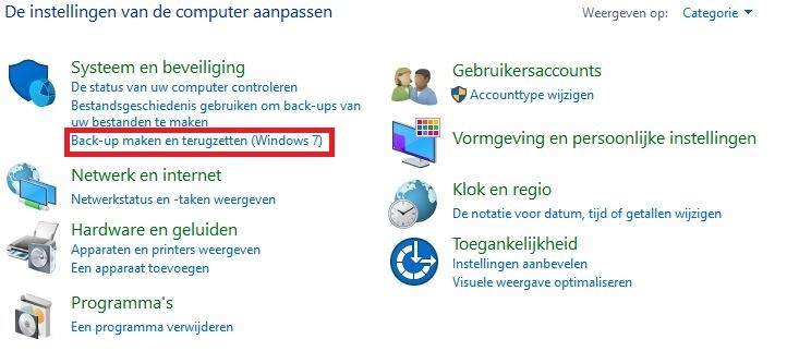 Wat bedoel je een back-up (met Windows 7)? Je werkt toch met Windows 10?