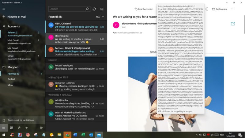 Mail van windows 10 en van Microsft outlook 365 hebben hetzelfde probleem