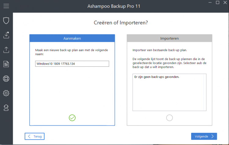 je dient eerst een back-up plan aan te maken ..tijdens het aanmaken van een back-up plan kom je het scherm tegen wat in bericht 2 vermeld staat maar ik denk dat dit bij u niet mogelijk is aangezien je geen volwaardige versie gebruikt ..ik gebruik de versie 11 pro