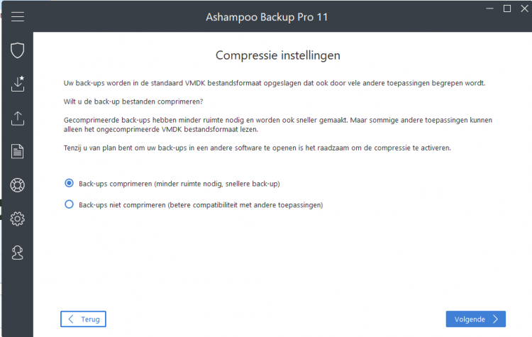 de optie om in te stellen of er al dan niet een kompresie dient toegepast te worden krijg je enkel te zien bij het aanmaken van een nieuwe back-up plan