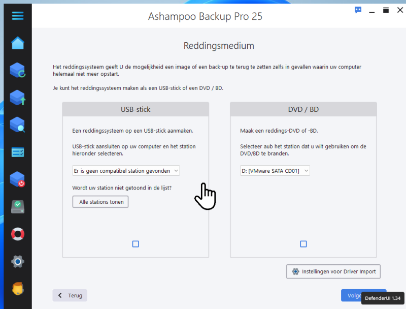 Nu lijkt dit niet meer te gaan met de versie 2025, ik kan alleen een reddingssysteem maken met USB of met dvd/cd.