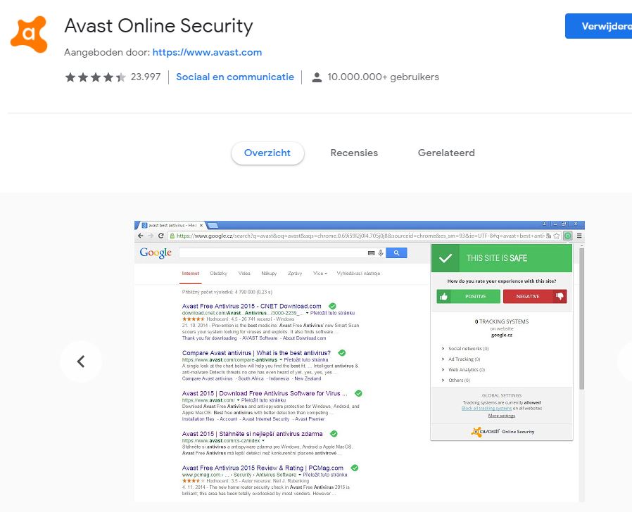 zie dat het online security is van Chrome van Avast