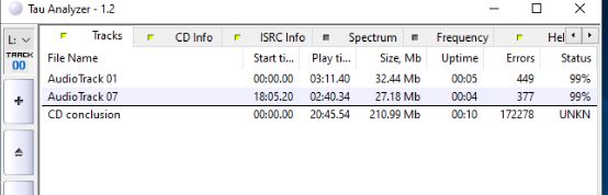 Ondertussen wat verder gewroet, geinstalleerd gehad en buiten gegooid. Met deze Tau Analyzer ben ik de cd eens gaan testen, 2 tracks zouden nog goed zijn, wellicht te lang zon gezien of is dat Kladblok-bestandje erop toch van toepassing.
