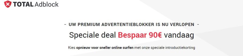 Maar iedere keer dat ik die open verschijnt een publiciteit voor "Total AdBlock" - zie bijlage -