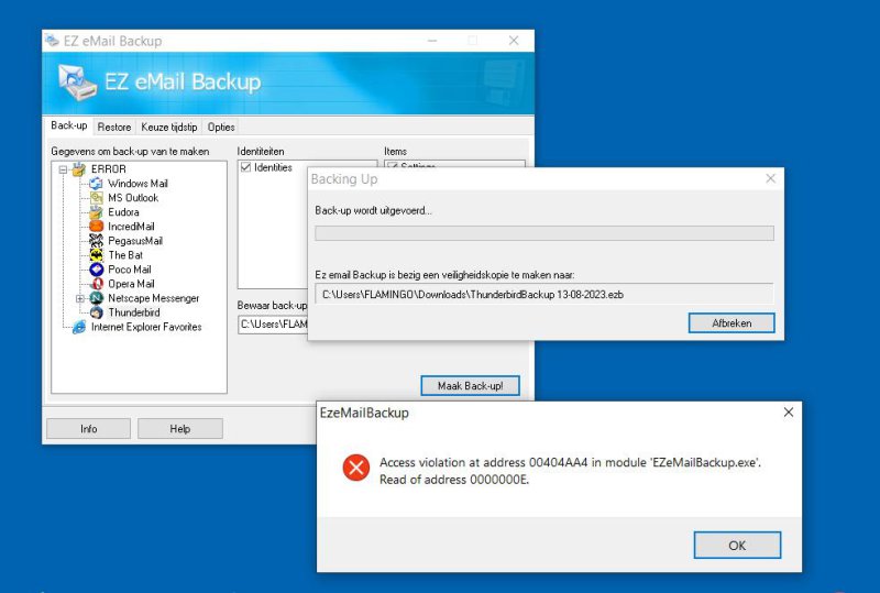Geen idee wat er aan de hand is, maar EZBackup zelf veroorzaakt dus een geheugenfout.