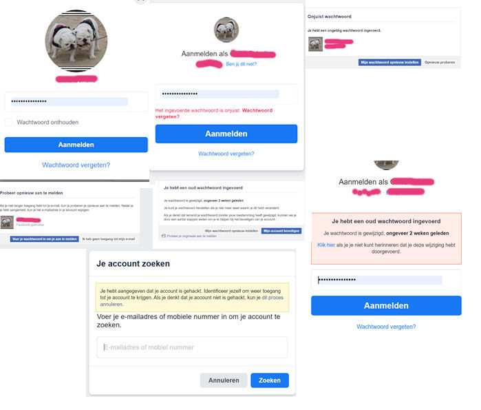 Facebook stuurt me in een soort loop als ik op zoek ga naar mijn wachtwoord om aan te passen. zie afbeelding.