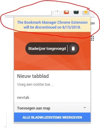 ik zie een mededeling als de bookmark open op Chrome