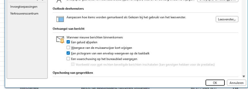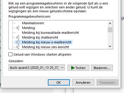 Ik krijg geen geluid bij inkomende email. (Outlook office, MS.-365, Windows 10, IMAP account).