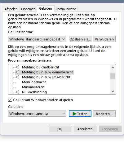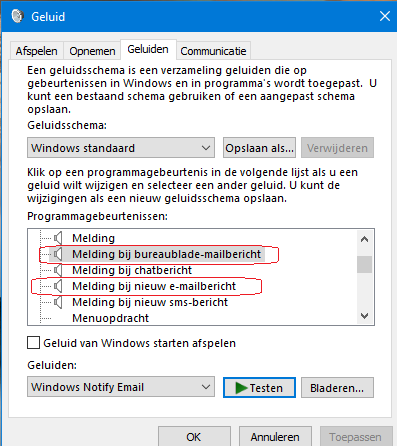 ik werk met de Windows 10 Mail , en zou graag weer een geluidsignaal krijgen als er een mail binnenkomt