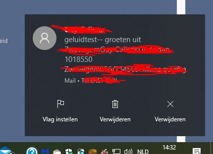 ik zie in instellingen wel dat ik meldingen kan weergeven en testen en hoor ook iet maar ik hoor toch niets als er mail binnenkomt