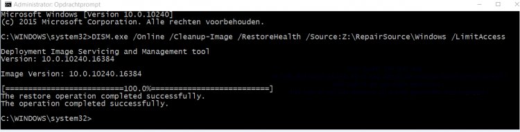DISM.exe /Online /CleanupImage /RestoreHealth /Source:Z:\RepairSource\Windows /LimitAccess