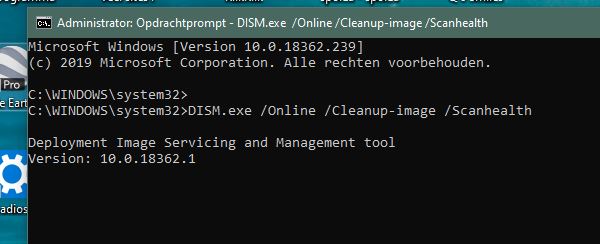Geef vervolgens de opdracht DISM.exe /Online /Cleanup-image /Scanhealth en druk op enter