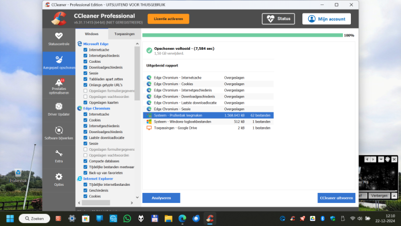 Op op te schonen gebruik ik meestal CCleaner die heel goed werkt en waarmee ik problemen ervaar, zie bijgaand plaatje
