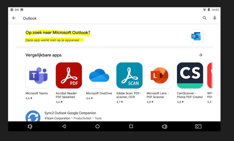 plots kan ik Outlook mail niet meer aanmelden op de tablet