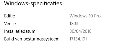 Het gaat over Windows 10 Home 64bit versie 1803 build 17134.65