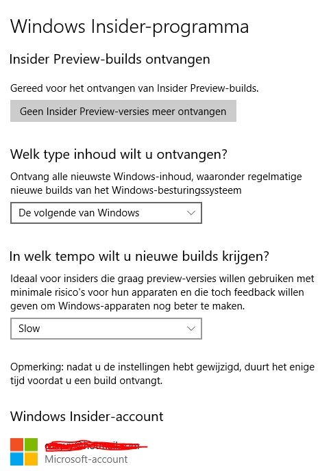 maar ik kreeg ook dit erna in "update " -zie bijlage-, zou ik niet beter die build insiders uitschakelen , maar ga ik dan nog updates verwittigingen krijgen ?