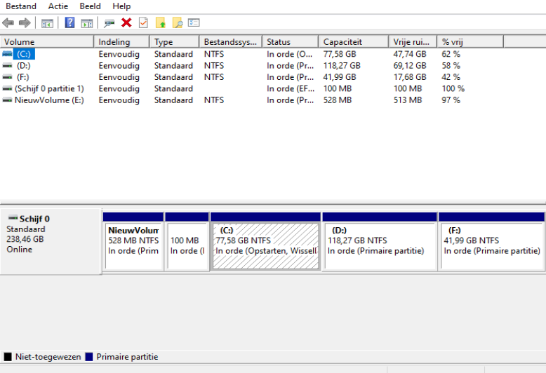 N>B> Ik stuur hierbij tevens een afbeelding van mijn SSD, waarbij Nieuw Volume de betreffende Partitie is.